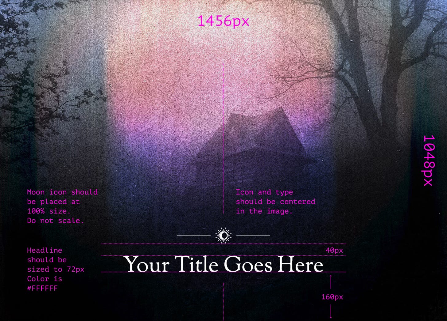 If you’d prefer to create your own image, at a bare minimum, we ask that you use the typeface and moon icon divider. See image below for size and position.